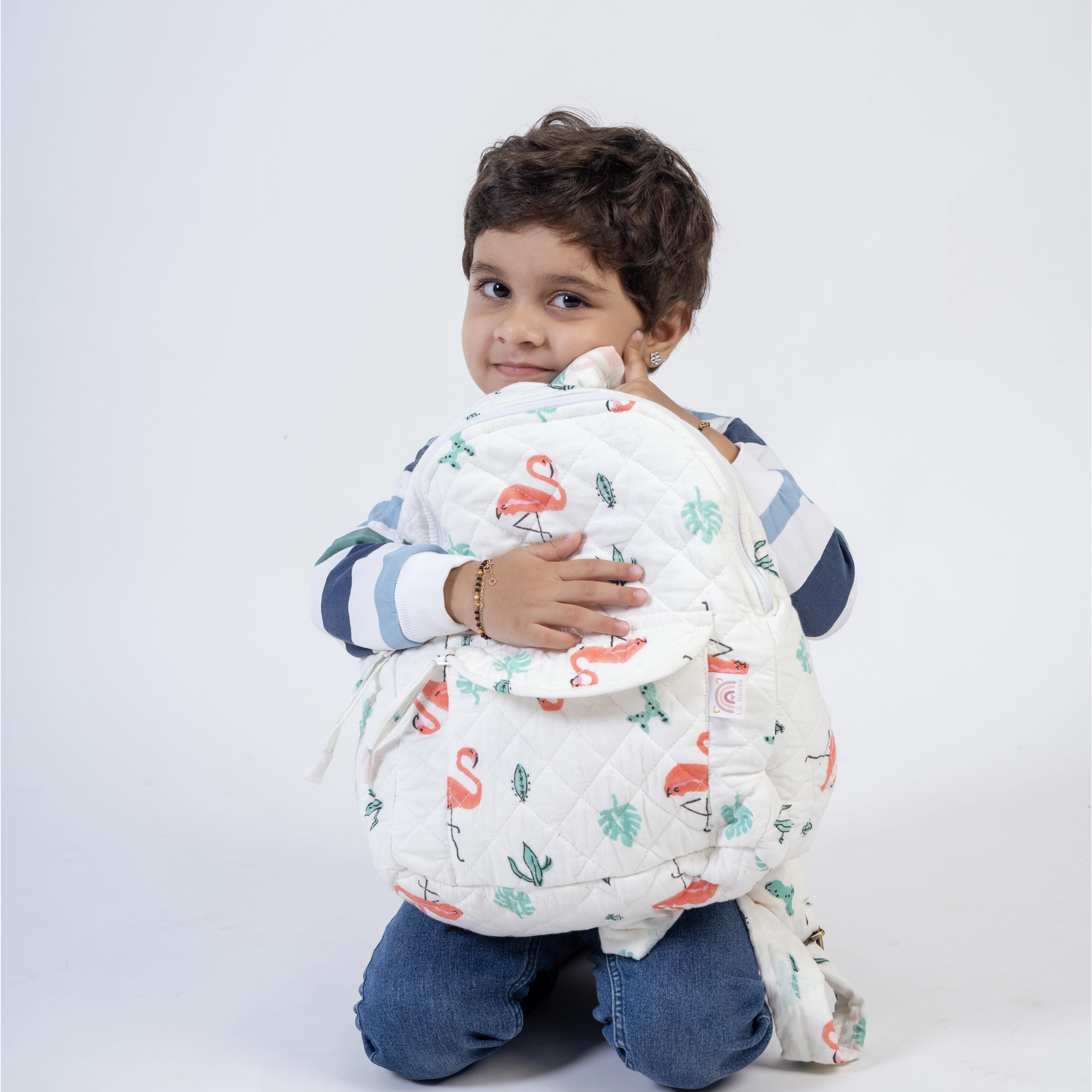 Introducing our Pure Cotton, Handcrafted, Plastic-Free School Backpack! This adorable yet highly functional backpack offers ample storage for toddlers to carry books, snacks, water bottles, and more. Crafted from pure cotton fabric with soft, padded cotton straps, each bag is meticulously handcrafted by skilled artisans. The extra-long straps are adjustable with a buckle for a comfortable fit. Made entirely of cotton, the backpack is machine washable and durable for repeated washes. Designed to be the perfect size for toddlers aged 2 and up, it's both practical and eco-friendly.