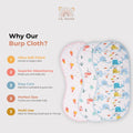 Our double sided burp cloths are soft and highly absorbent for all those drool worthy moments. Its distinctive shape fits perfectly over your shoulder. The layers of naturally dyed organic cotton are extremely safe for your baby’s delicate skin as well as your clothes!