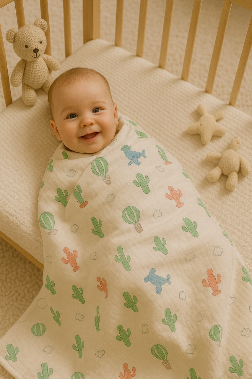 This Organic Cotton Baby Dohar is made with 100% organic cotton for an exceptionally comfortable, breathable, and lightweight summer layer. Its soft, lightweight construction is perfect for keeping your little one cool and cozy. Our delightful patterns add an extra touch of love. Must have for new-born baby. Multipurpose: As they are super absorbent and gentle on baby skin and won’t scratch or cause irritation to your baby skin. Can be used as a AC Blanket and light winters wrap , receiving blanket, Playmat, etc. Machine washable. Use them again & again and it gets soft with every wash.