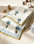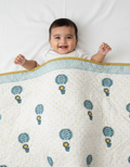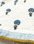 This Blue Hot Air Balloon Quilt is crafted from 100% cotton fabric and filling, making it exceptionally soft, breathable, and cozy for your little one. Hand block printed and hand quilted, it offers the perfect balance of lightweight comfort and warmth. Designed to suit babies, toddlers, and kids aged 0 to 6 years, it keeps your little one comfy through every stage.